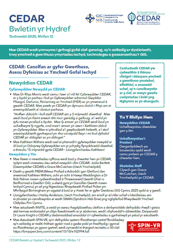 Darganfyddwch newyddion diweddar CEDAR drwy ddarllen ein bwletin chwarterol sy'n cynnwys newyddion y tîm, uchafbwyntiau'r prosiect, sbotolau staff a'n cyhoeddiadau diweddaraf.
